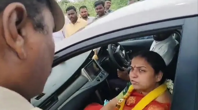 यह घटना अन्नमय्या जिले में हुई जब हरिथा रेड्डी एक स्थानीय कार्यक्रम में जा रही थीं। वीडियो में देखा जा सकता है कि वह कार की पैसेंजर सीट पर बैठी हुई हैं और 30 मिनट तक इंतजार करने पर पुलिस अधिकारी को डांट रही हैं।