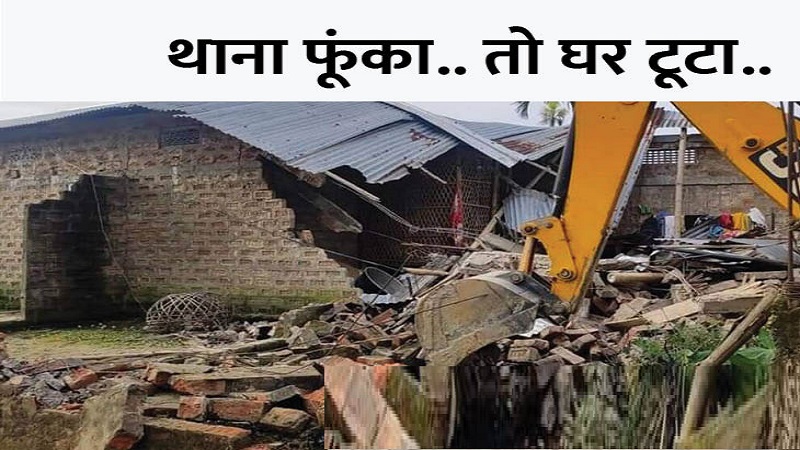 असम में आगजनी पर पुलिस का जवाब:थाना फूंकने वालों के घर गिराए, कहा- क्रिमिनल्स ने सबूत मिटाने के लिए लगाई आग