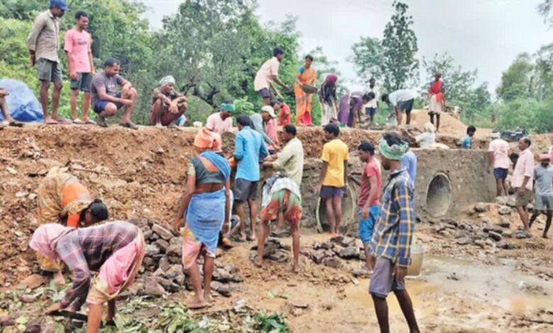 मुलुगु में आदिवासियों ने मिलकर पुलिया निर्माण कर दिखाई एकता।