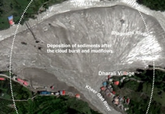 इसरो तस्वीरों में उत्तरकाशी के धराली गांव की भीषण तबाही।