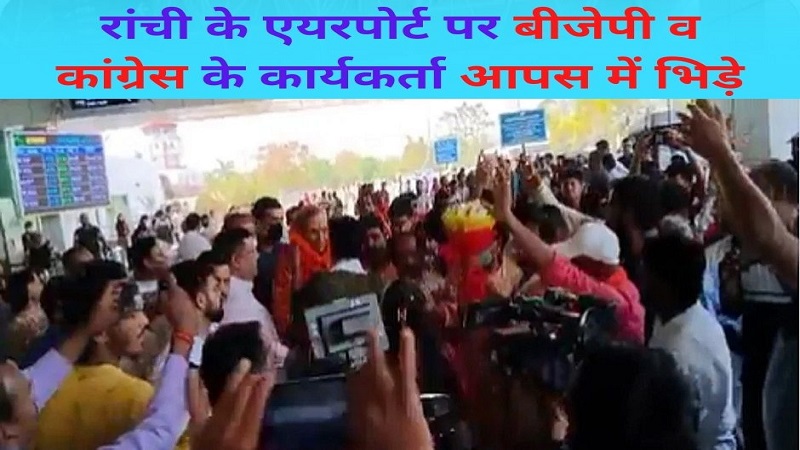 रांची के बिरसा मुंडा एयरपोर्ट पर बीजेपी व कांग्रेस के कार्यकर्ता आपस में भिड़े