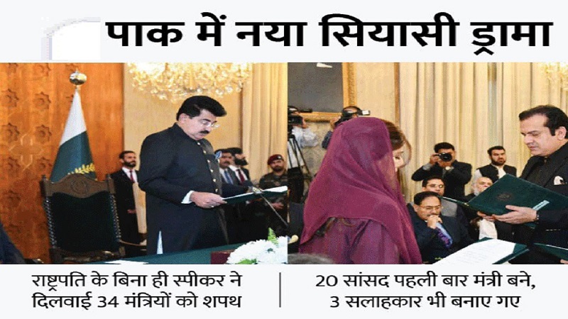 पाकिस्तान में राष्ट्रपति के बिना शहबाज कैबिनेट की शपथ, सीनेट स्पीकर ने 31 कैबिनेट और 3 राज्य मंत्री को शपथ दिलाई