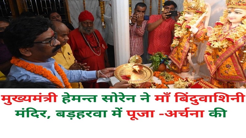 मुख्यमंत्री हेमन्त सोरेन ने माँ बिंदुवाशिनी मंदिर, बड़हरवा, साहिबगंज में पूरे विधि -विधान से पूजा -अर्चना कर राज्य और राज्यवासियों की उन्नति, खुशहाली और सुख- चैन की कामना की